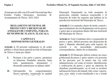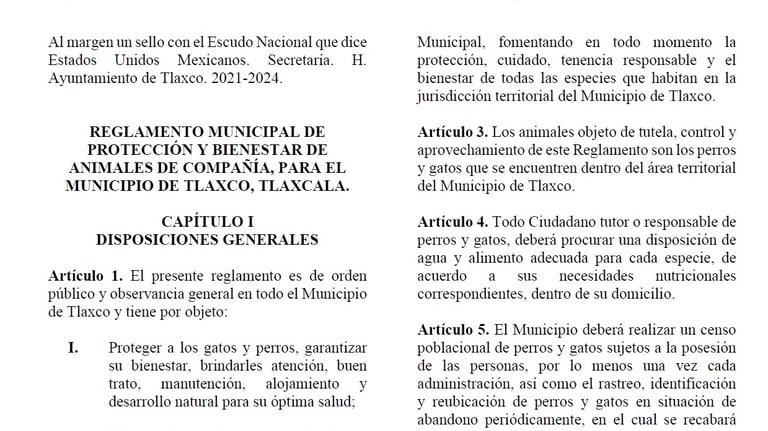 Reglamento Municipal de Protección y Bienestar de Animales de Compañía