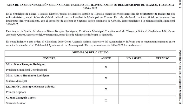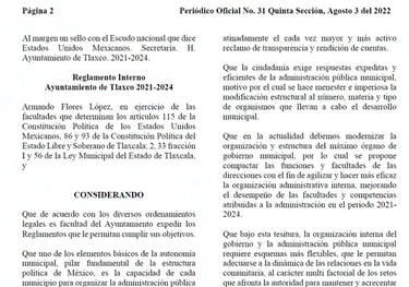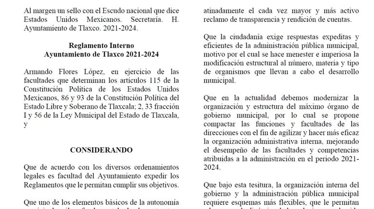 Reglamento interno del Ayuntamiento de Tlaxco