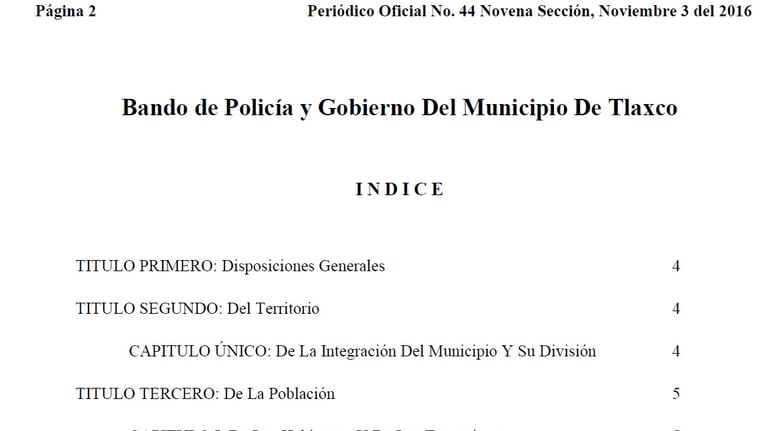 Bando de Policía y Gobierno del Municipio de Tlaxco